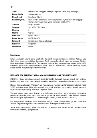 MENAKER IDA TANGGAPI VIRALNYA KARYAWAN GIANT YANG MENANGIS