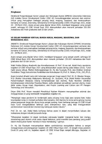 antara perguruan tinggi dan dunia kerja sangat penting. Kami berharap semoga UI CISE Virtual