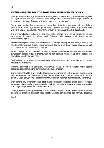 perempuan di perkebunan kelapa sawit. Pertama, risiko bahaya terkait Kesehatan dan