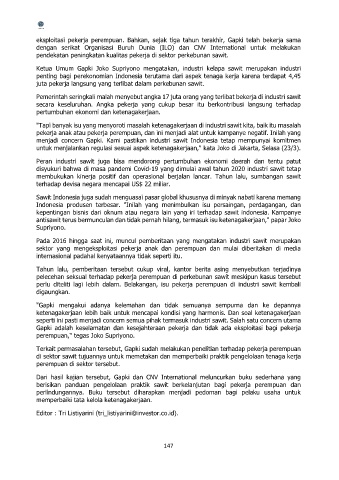 eksploitasi pekerja perempuan. Bahkan, sejak tiga tahun terakhir, Gapki telah bekerja sama