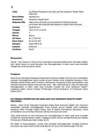 ketenagakerjaan di sektor sawit yang kemudian menjadi alat untuk kampanye negatif,"