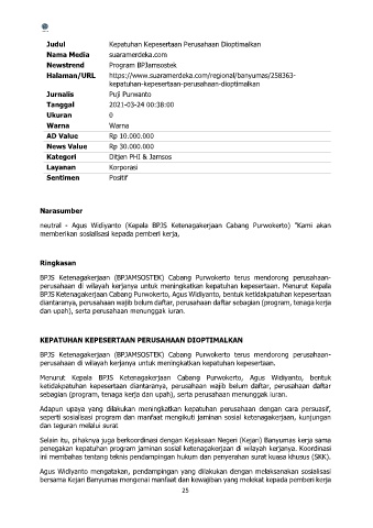 neutral - Agus Widiyanto (Kepala BPJS Ketenagakerjaan Cabang Purwokerto) "Kami akan