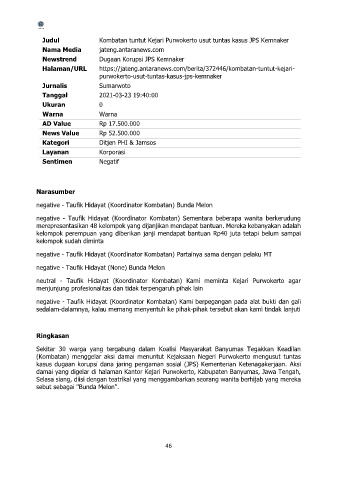 neutral - Taufik Hidayat (Koordinator Kombatan) Kami meminta Kejari Purwokerto agar