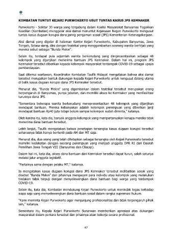 tersebut merupakan bentuk dukungan kepada Kejari Purwokerto untuk nengusut dalang utama