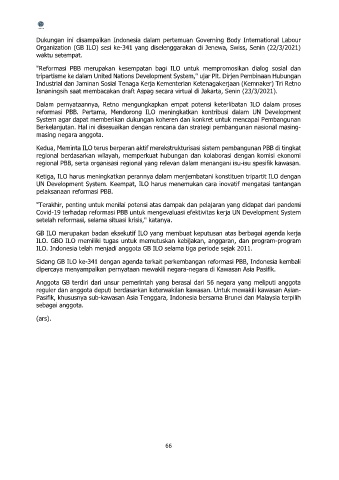 Sidang GB ILO ke-341 dengan agenda terkait perkembangan reformasi PBB, Indonesia kembali