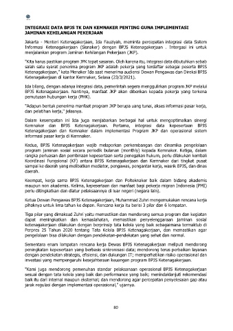 program jaminan sosial secara periodik bulanan (monthly) kepada Kemnaker. Ketiga, dalam