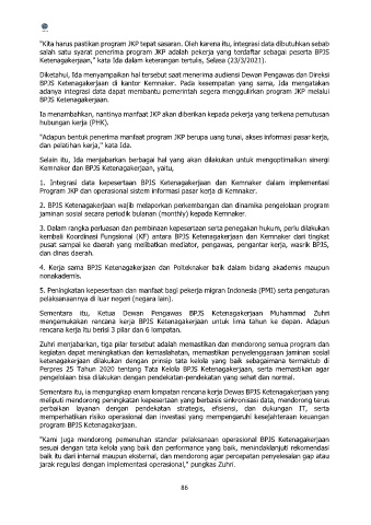 "Kita harus pastikan program JKP tepat sasaran. Oleh karena itu, integrasi data dibutuhkan sebab