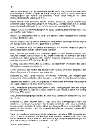 Pertama, integrasi data kepesertaan BPJamsostek dan Kemnaker dalam implementasi Program
