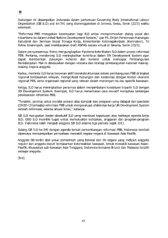 Sidang GB ILO ke-341 dengan agenda terkait perkembangan reformasi PBB, Indonesia kembali