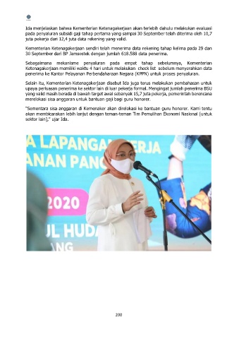 pada penyaluran subsidi gaji tahap pertama yang sampai 30 September telah diterima oleh 10,7