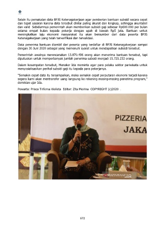 Selain itu pemakaian data BPJS Ketenagakerjaan agar pemberian bantuan subsidi secara cepat