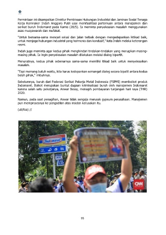 untuk menjaga hubungan industrial yang harmonis dan kondusif," kata Indah melalui keterangan