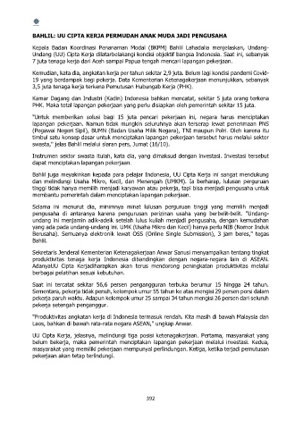 BAHLIL: UU CIPTA KERJA PERMUDAH ANAK MUDA JADI PENGUSAHA