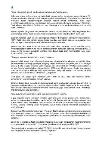 "Jadi tidak ada alasan upah minimum tahun 2020 ke 2021 tidak ada kenaikan karena