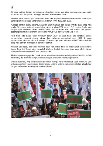 "Jadi tidak ada alasan upah minimum tahun 2020 ke 2021 tidak ada kenaikan karena