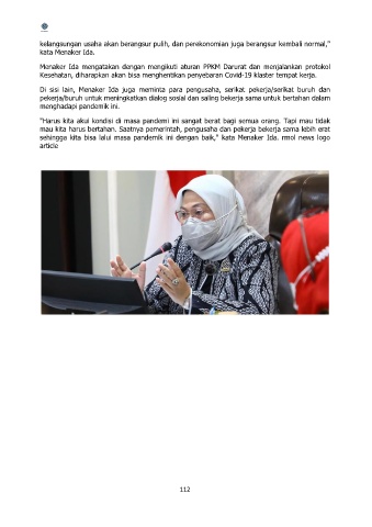 sehingga kita bisa lalui masa pandemik ini dengan baik," kata Menaker Ida. rmol news logo