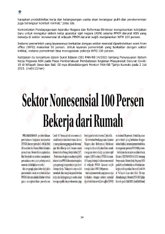 office (WFO) maksimal 50 persen. Untuk layanan pemerintah yang berkaitan dengan sektor
