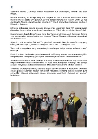 "Dua puluh orang pekerja asing yang datang itu rombongan ketiga, totalnya sudah 46 orang,"