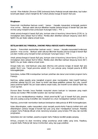 neutral - Piter Abdullah (Ekonom CORE Indonesia) Kartu Prakerja banyak kelemahan, tapi bukan