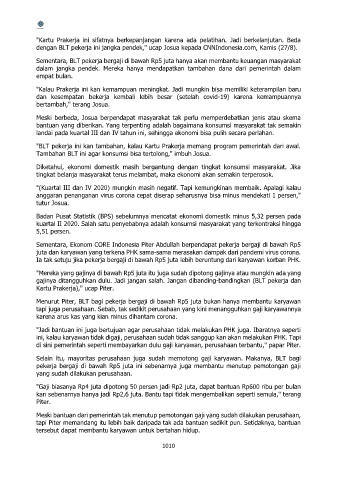 dengan BLT pekerja ini jangka pendek," ucap Josua kepada CNNIndonesia.com, Kamis (27/8).