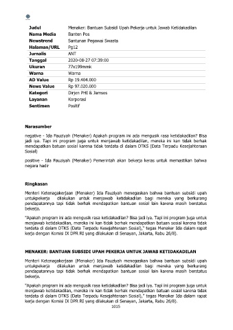 positive - Ida Fauziyah (Menaker) Pemerintah akan bekerja keras untuk memastikan bahwa
