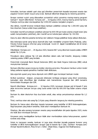 pegawai honorer dalam wujud uang tunai. Bantuan diberikan langsung ke rekening penerima.