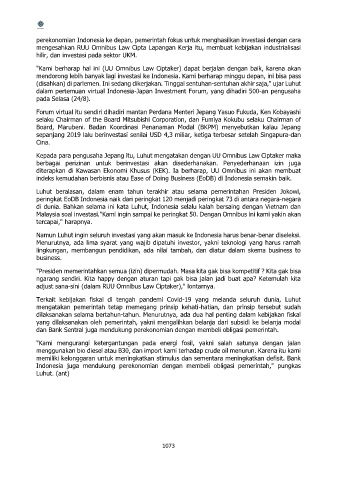 Kepada para pengusaha Jepang itu, Luhut mengatakan dengan UU Omnibus Law Ciptaker maka