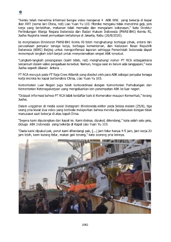 "Kemlu telah menerima informasi berupa video mengenai 4 ABK WNI yang bekerja di kapal