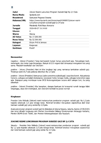 Judul Jokowi Resmi Luncurkan Program Subsidi Gaji Rp 2,4 Juta