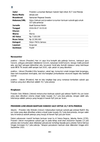 Judul Presiden Luncurkan Bantuan Subsidi Gaji Untuk 15,7 Juta Pekerja