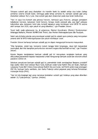 disalurkan sebesar Rp1,2 juta. Sisa subsidi gaji akan disalurkan pada dua bulan berikutnya.