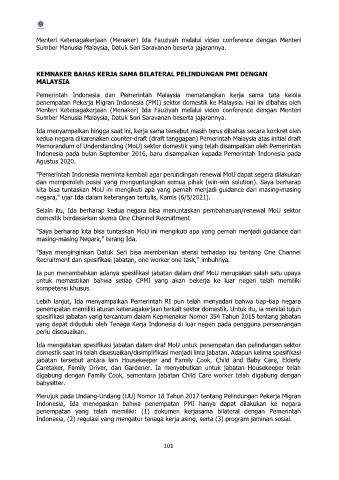 penempatan Pekerja Migran Indonesia (PMI) sektor domestik ke Malaysia. Hal ini dibahas oleh