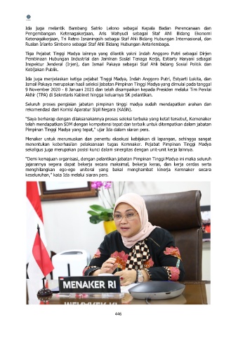 Pimpinan Tinggi Madya yang tepat," ujar Ida dalam siaran pers.
