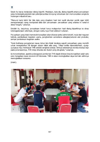 Selain itu harus melakukan dialog bipartit. Meskipun, kata dia, dialog bipartit antara perusahaan