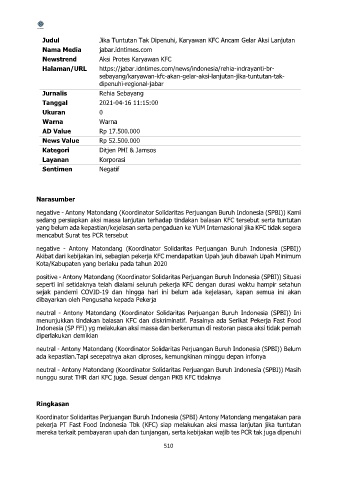 menunjukkan tindakan balasan KFC dan diskriminatif. Pasalnya ada Serikat Pekerja Fast Food