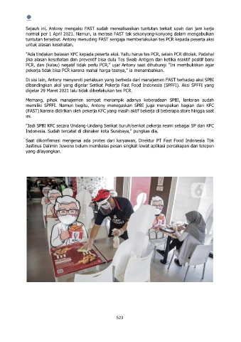 "Ada tindakan balasan KFC kepada peserta aksi. Yaitu harus tes PCR, selain PCR ditolak. Padahal