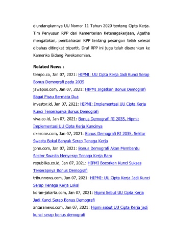 tempo.co, Jan 07, 2021: HIPMI: UU Cipta Kerja Jadi Kunci Serap