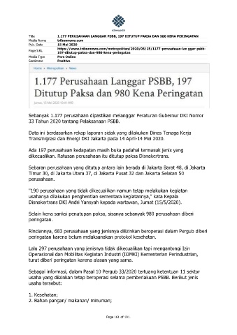 Title          1.177 PERUSAHAAN LANGGAR PSBB, 197 DITUTUP PAKSA DAN 980 KENA PERINGATAN