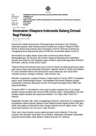 Title KEMNAKER-DIASPORA INDONESIA GALANG DONASI BAGI PEKERJA