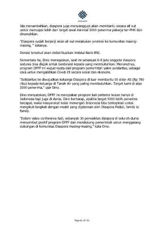 Ida menambahkan, diaspora juga menyanggupi akan membantu secara all out