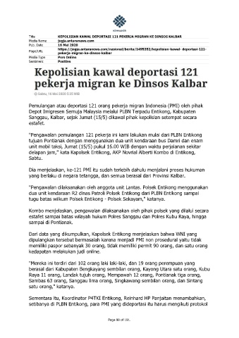 Title KEPOLISIAN KAWAL DEPORTASI 121 PEKERJA MIGRAN KE DINSOS KALBAR