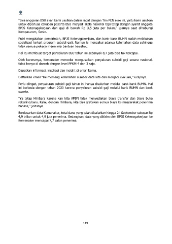 ini berbeda dengan tahun 2020 karena penyaluran subsidi gaji melalui bank BUMN dan bank
