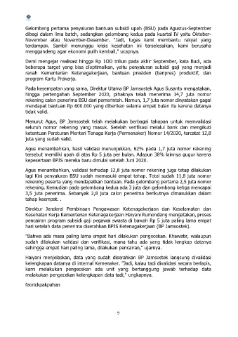 Gelombang pertama penyaluran bantuan subsidi upah (BSU) pada Agustus-September