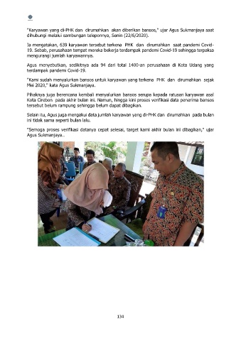 "Karyawan yang di-PHK dan dirumahkan akan diberikan bansos," ujar Agus Sukmanjaya saat