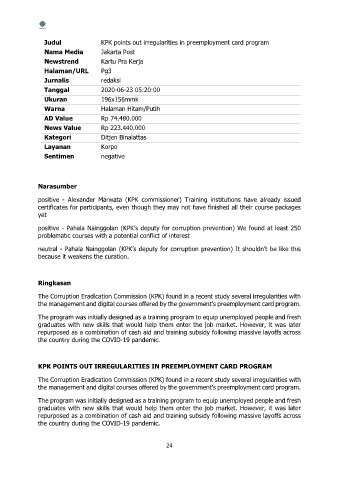 Judul KPK points out irregularities in preemployment card program