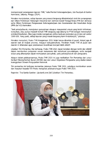 mempercepat penanganan laporan THR," kata Menteri Ketenagakerjaan, Ida Fauziyah di Kantor