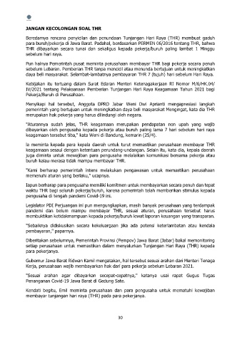 para buruh/pekerja di Jawa Barat. Padahal, berdasarkan PERMEN 06/2016 tentang THR, bahwa