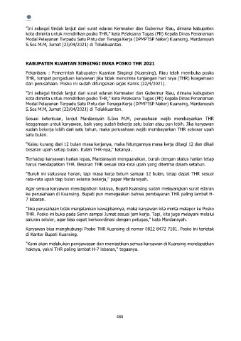 Karyawan bisa menghubungi Posko THR Kuansing di nomor 0822 8472 7181. Posko ini terletak