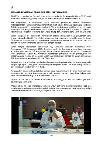 MENAKER LUNCURKAN POSKO THR 2021, INI TUJUANNYA
