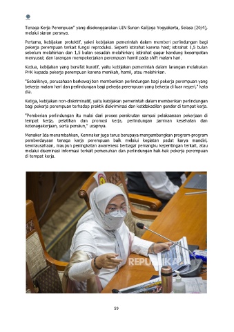 "Sebaliknya, perusahaan berkewajiban memberikan perlindungan bagi pekerja perempuan yang